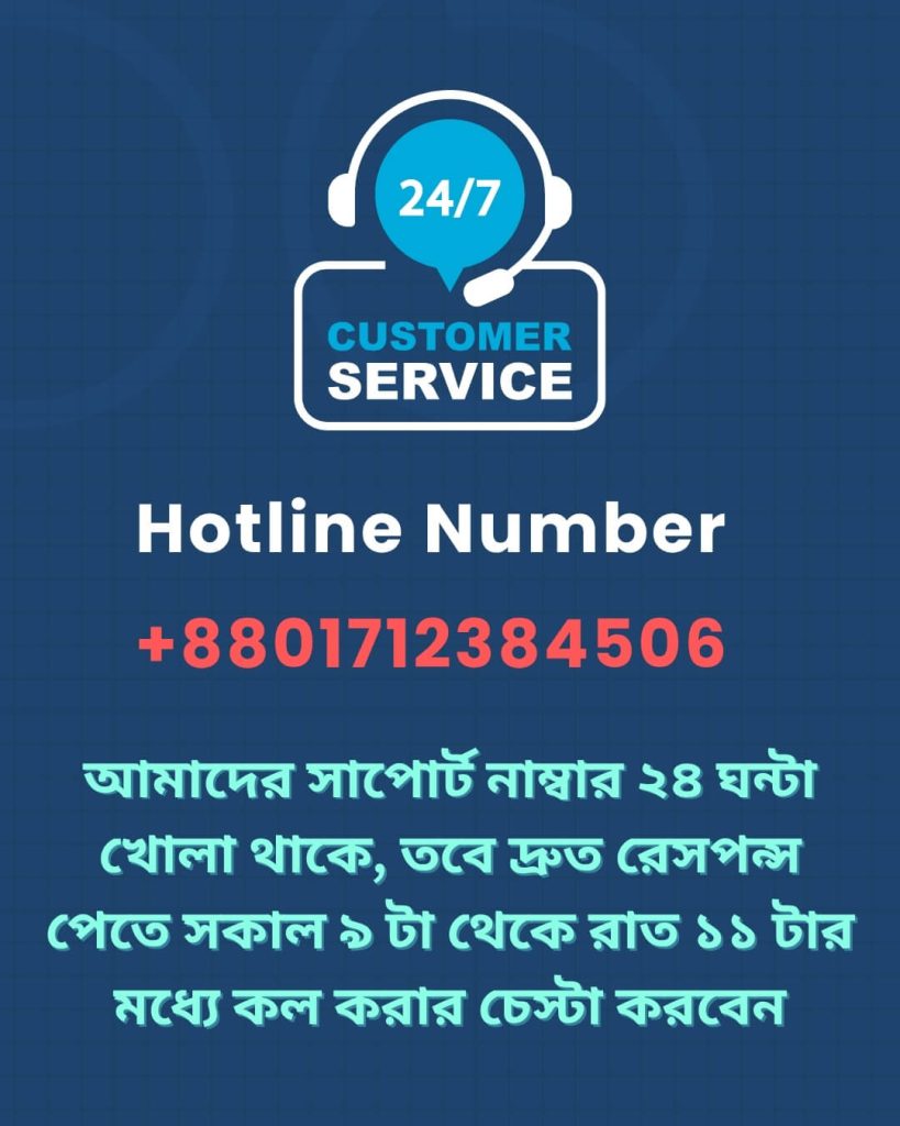 আমাদের সাপোর্ট সেন্টার ২৪/৭ চালু আছে তবে দ্রুত রেসপন্স পেতে সকাল ৯ টা থেকে রাত ১১ টার মধ্যেই যোগাযোগ করার চেস্টা করবেন