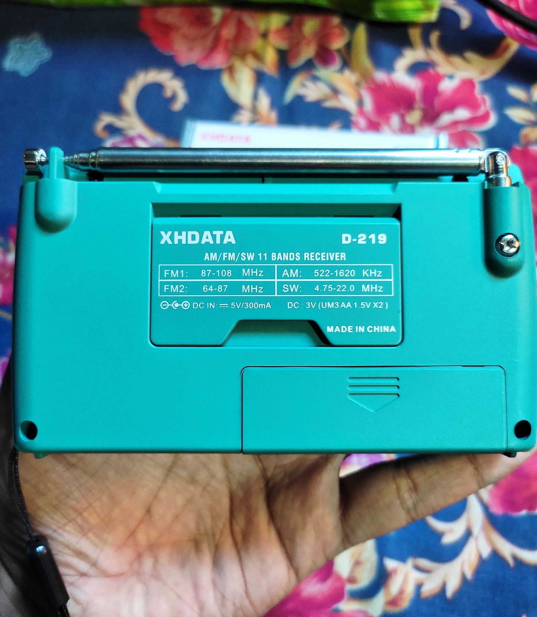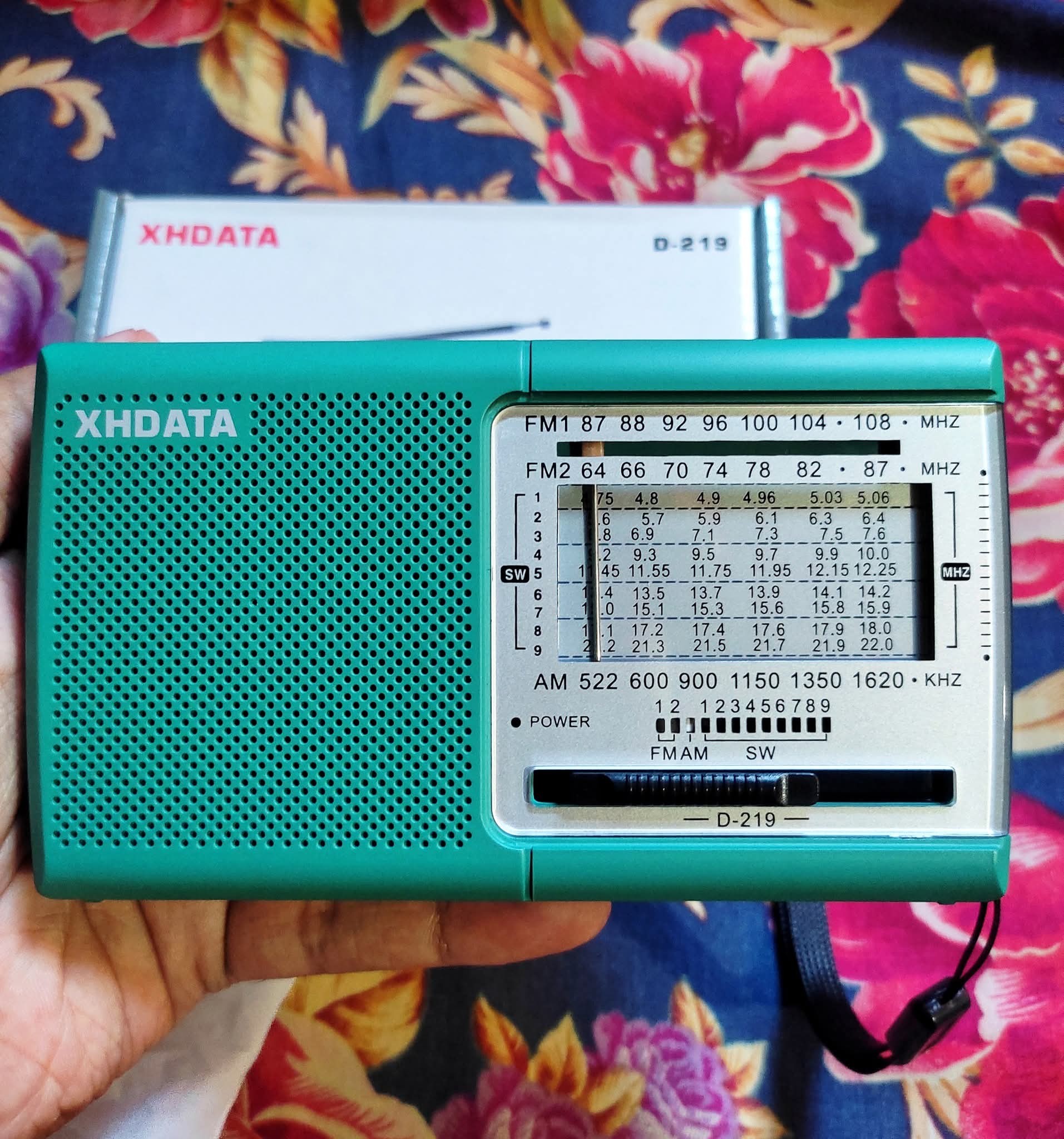 XHDATA D-219 একটি পোর্টেবল FM/AM/SW রেডিও, যা মোট ১১টি ব্যান্ড সাপোর্ট করে (FM1, FM2, AM এবং SW1-9)।